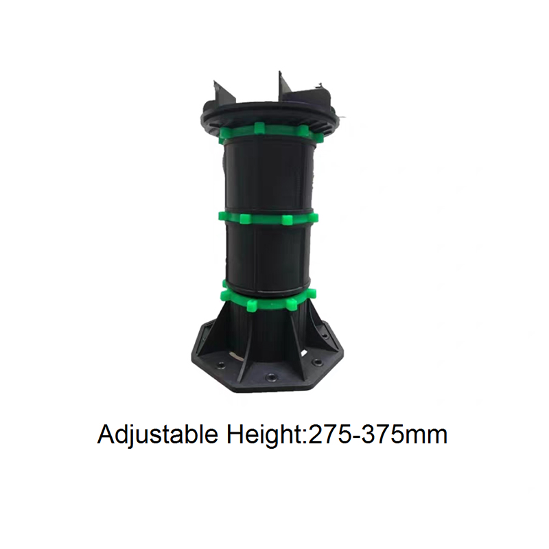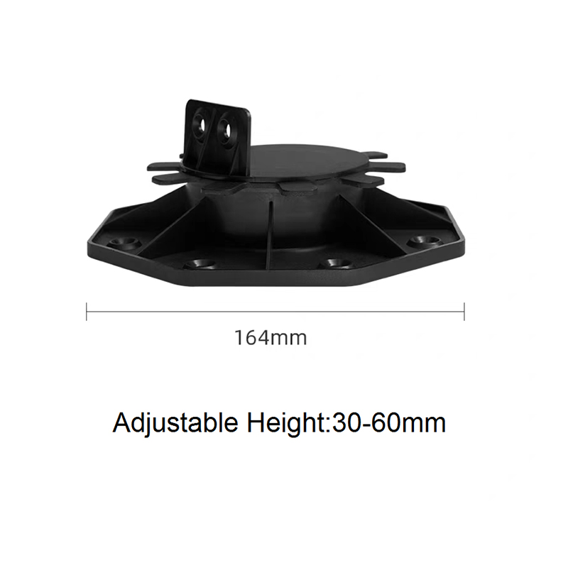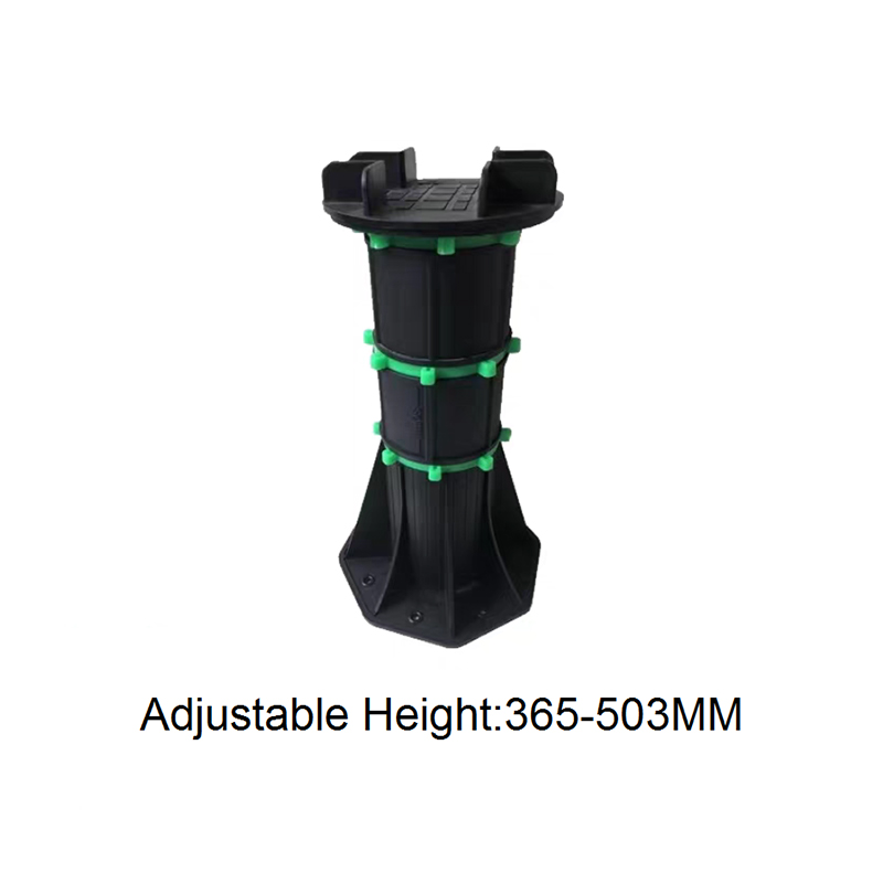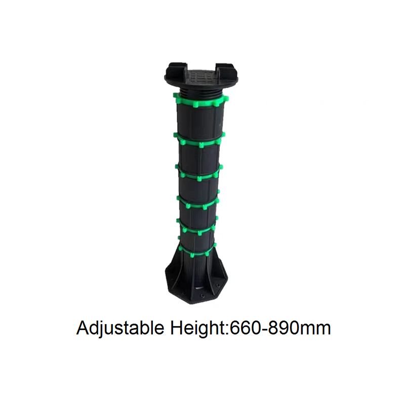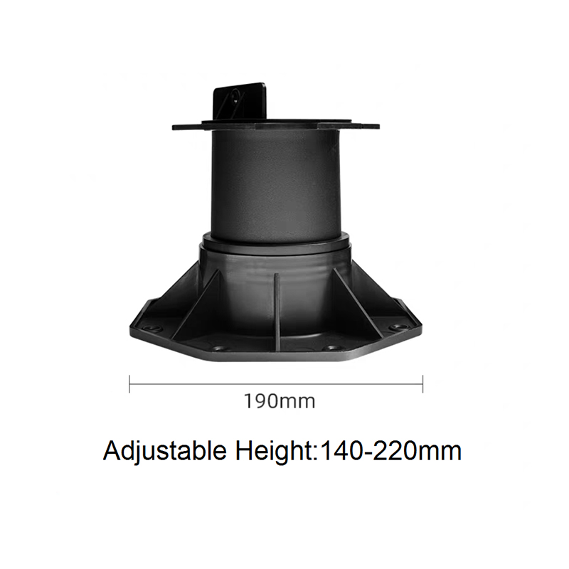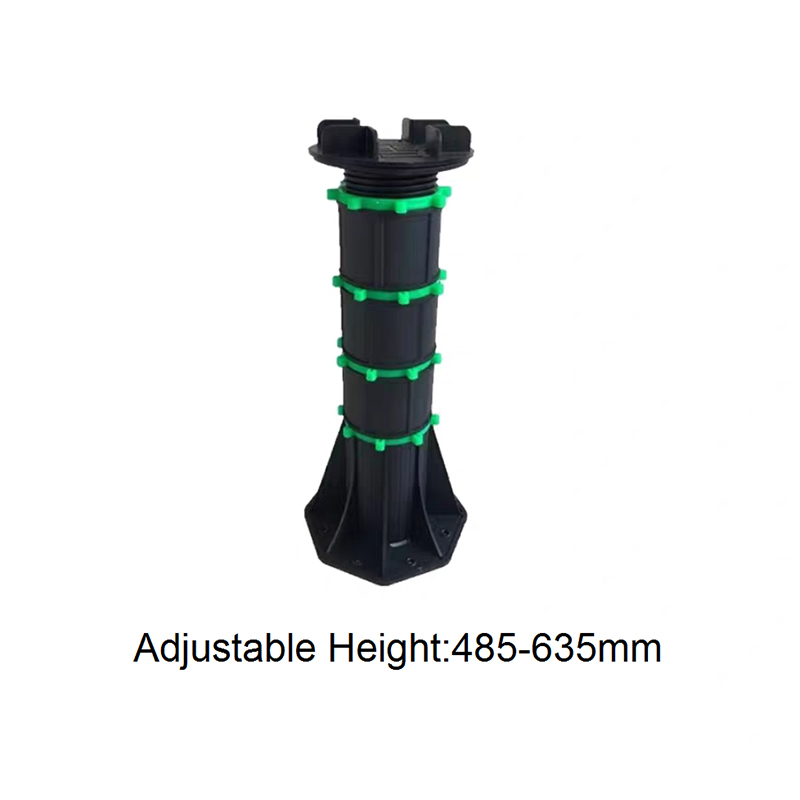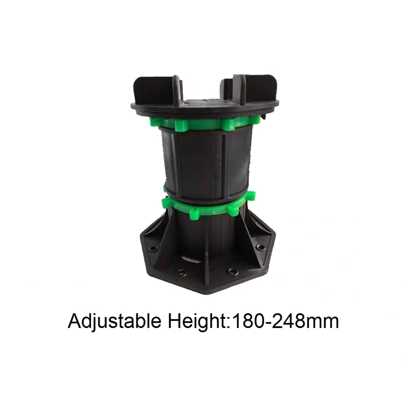 The Adjustable Pedestal for WPC Decking and Tile is a height-adjustable support designed for both outdoor and indoor decorative flooring. Made of a black engineering plastic body with green adjustment components, the pedestal consists of a circular load-bearing platform, an adjustable center section, and a hexagonal stabilizing base. The height can be freely adjusted from 90mm to 118mm, allowing for quick adaptation to varying thicknesses of wood-plastic composite (WPC) flooring and tiles, ensuring smooth, stable support.